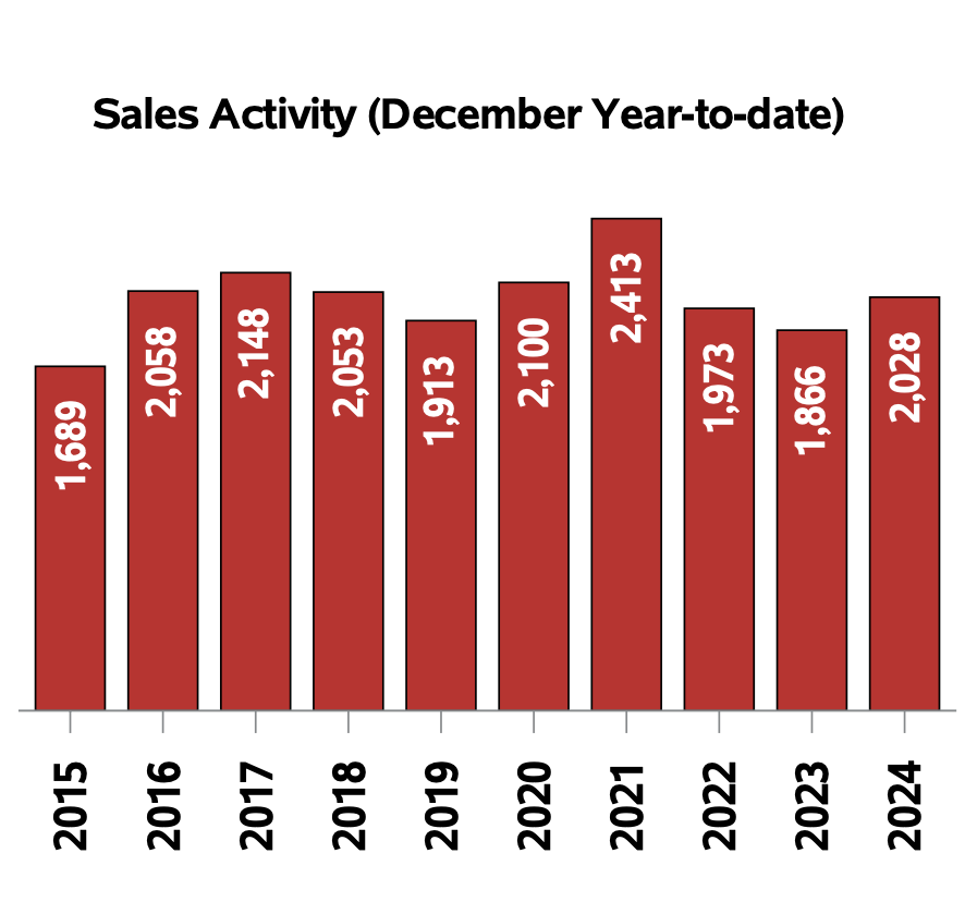 On an annual basis, home sales totaled 2,028 units over the course of 2024. This was an increase of 8.7% from 2023. Certainly this was down from the highs of 2021 Covid times but quite a solid year for sales on PEI on average.
